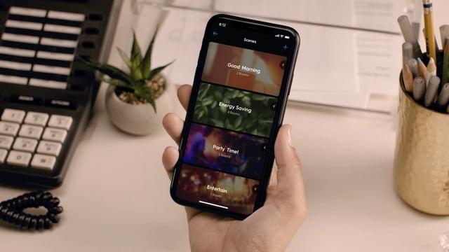 Want to kick-start your morning? With one touch, you can create an energetic morning scene that turns on cool, vibrant light, adjusts your temperature, and even heats up your flat iron.